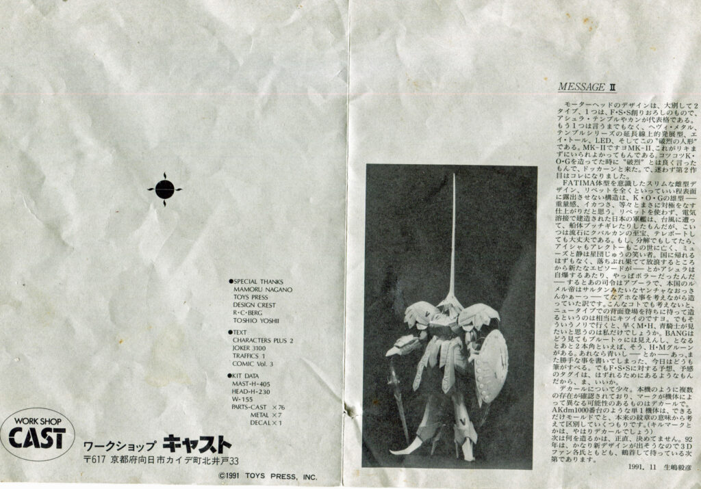 ファイブスター物語(永野護)に出てくるモーターヘッドのレジンキット。ワークショップキャスト製。30年ほど放ったらかしていた。何とか完成。